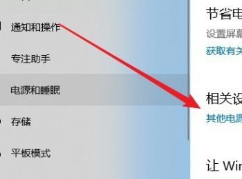 4. 第四步在右侧窗口中,根据下图箭头所指,点击【其他电源设置】选项。