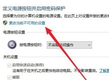6. 第六步在跳转的页面中,根据下图箭头所指,点击【更改当前不可用的设置】选项。