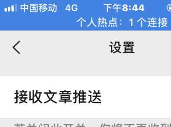5. 最后在【设置】页面中,根据下图所示,将【接收文章推送】选项后的圆圈向左滑动,显示为白色表示成功关闭。
