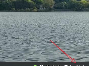 4. 第四步根据下图箭头所指,点击电脑任务栏【网络】图标。