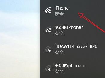 5. 第五步在弹出的菜单栏中,根据下图箭头所指,找到并点击iPhone手机个人热点。