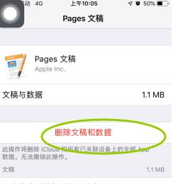 4. 第四步在跳转的页面中,先按照需求选择应用,接着根据下图所示,点击【删除文稿和数据】选项。