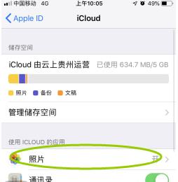 6. 第六步先退回【iCloud】页面,接着根据下图所示,点击【照片】选项,然后关闭【iCloud照片】。