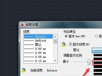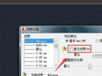 5. 第五步打开【线宽设置】窗口后,根据下图箭头所指,勾选【显示线宽】。