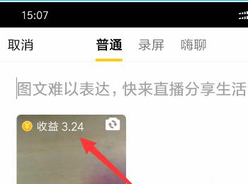 4. 直播结束后,可以看到直播的收益,点击“收益”