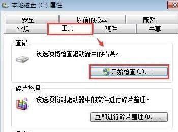 ②在磁盘属性窗口中,切换至工具栏,点击“开始检查”对该磁盘进行查错,如图所示: