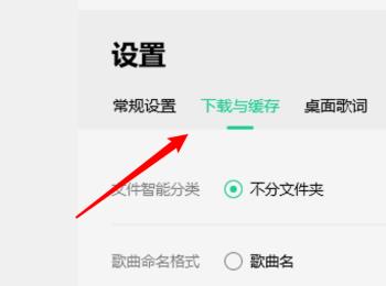 4. 第四步打开【设置】窗口后,根据下图箭头所指,点击【下载与缓存】选项。