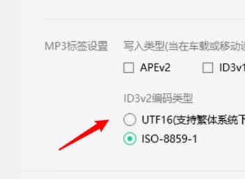 5. 第五步根据下图箭头所指,找到【ID3v2编码类型】菜单。