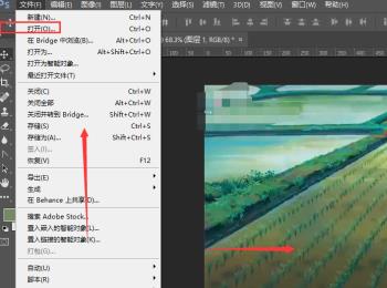 1. 首先打开电脑上的PS软件,进入主页面后,依次点击左上角的文件—打开,将想要合并的视频导入软件中,如图