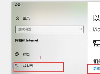 2. 如图,在打开的设置页面,点击左侧的以太网选项,在右侧的相关设置下,点击更改适配器选项。