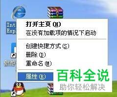 2. 或者鼠标右键单击IE浏览器图标,在弹出的菜单栏中根据下图所示,点击【属性】选项。