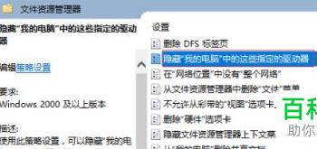 3. 然后找到Windows资源管理器,点击之后,在右侧打开的页面,找到“隐藏我的电脑中的这些指定的驱动器”的选项