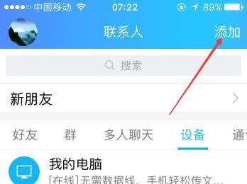 接着在“联系人”页面点击右上角的“添加”按键。