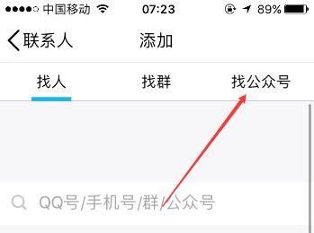 之后在“添加”页面点击“找公众号”按键。