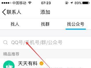然后在找公众号搜索栏中输入“QQ悄悄话团队”几个字。