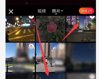 4. 如图,在打开的页面,选择想要上传的图片,然后选择【最多只能选择7张图片】,选择好之后,点击右上角的完成按钮