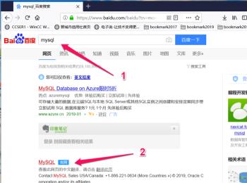 1. 首先第一步打开电脑浏览器,根据下图箭头所指,先在搜索框中输入【mysql】,接着点击【MySQL官网】链接。