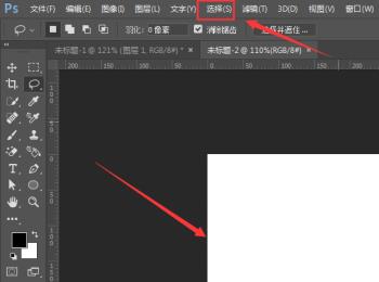1. 如图,我们在打开的PS软件中,点击上方的【选择】菜单