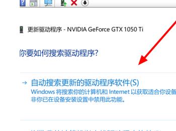 4.第四步,我们可以看到如下图所示的页面,点击箭头所指的自动搜索更新的驱动程序软件选项。