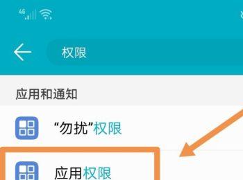 3. 在打开的搜索页面,输入“权限”进行搜索,然后点击下方的应用权限选项。