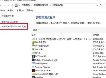 2. 然后在打开的页面,找到程序与功能选项,打开之后,点击左上方的“启用或关闭Windows功能”选项。