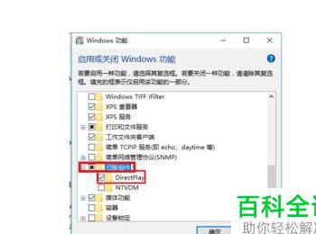 3. 在弹出的窗口中,找到”旧版组件“选中后,勾选上下方的”DirectPlay"选项,最后点击确定按钮即可。