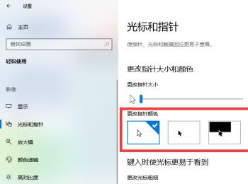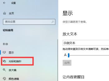 4. 第四步进入【轻松使用】页面后,根据下图所示,点击左侧【光标和指针】选项。