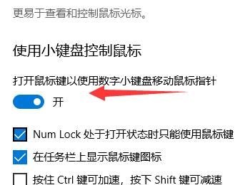 5. 在右侧打开的页面,找到【使用小键盘控制鼠标】的选项,点击下方的开关。