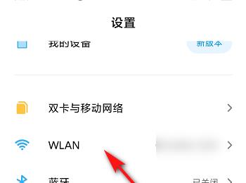 2. 在打开的设置页面,选择WLAN选项,打开
