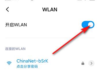 3. 在打开的WLAN页面,将开启WLAN右侧的开关打开,然后手机就会搜索WiFi网络,并进行自动连接