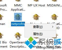 3、在右侧找到“netprofm”,单击右键,点击“属性”;