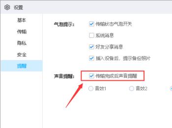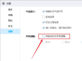 5.第五步,来到下图所示的页面后,成功关闭传输完成后声音提醒。