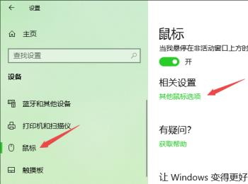 4. 在打开的设备设置页面,点击左侧的鼠标选项,在右侧相关设置下,点击其他鼠标选项;