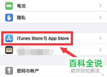 2. 进入设置页面后,找到下方的【iTunes Store与App Store】选项,点击。