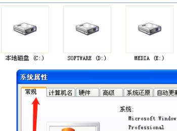 3. 第三步打开【系统属性】窗口后,根据下图箭头所指,先点击【常规】,接着即可查看内存大小。