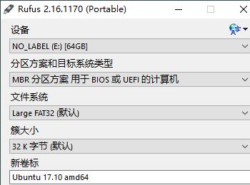 打开Rufus,选择U盘,选择上面下载的Ubuntu 17.10镜像(注意先备份U盘内的重要数据,本步骤会格式化U盘),点击开始等待写入成功