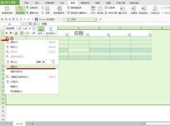 第三步确定后,从左侧,拖动鼠标左键选中所有要删除的空白格和空白行。选中后呈现为绿色部分,下图。