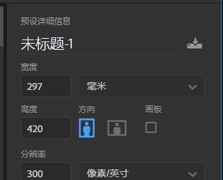 3. 在弹出的新建窗口中,设置新建文件的尺寸,选择默认photoshop大小,右侧可以手动输入宽度和高度,来设置想要的尺寸