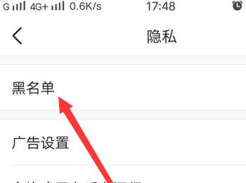 4. 在打开的隐私设置页面,选择黑名单选项,打开。