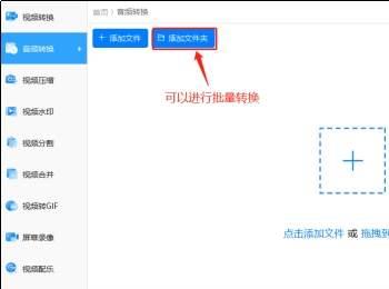 2、在音频转换的子界面里,我们可以把音频素材文件直接拖拽到里面,若是遇到对个转换任务模式时,也可以选择【添加文件夹】进行批量转换。