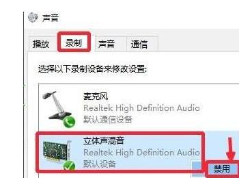 7.第七步,在下图所示的页面中,右击立体声混音选项,接着点击弹出窗口中的禁用选项。