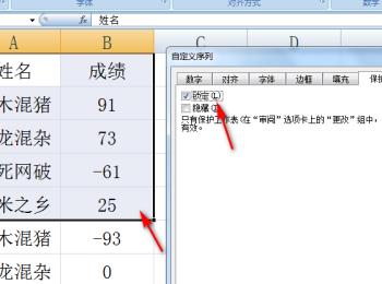 3.第三步,在下图所示的页面中,选中想要锁定的单元格,接着右击选中的单元格,并点击弹出窗口中的设置单元格格式选项,然后点击页面顶部的保护选项,接着勾选锁定左边的复选框,然后点击右下角箭头所指的确定选项。
