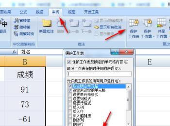4.第四步,我们可以看到如下图所示的页面,点击页面顶部的审阅选项,接着点击添加所指的保护工作表选项,然后根据自己的需求,来设置密码或者不设置密码,并点击页面底部的确定选项。