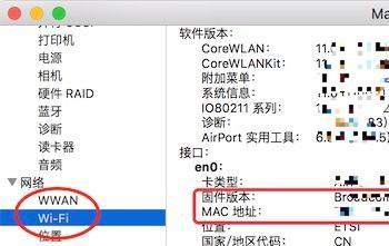 我们点击左边树状菜单的网络,展开后,点击 “Wi-Fi”选项, 点击后在右边就可以找到MAC 地址的信息了。