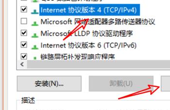 4.在弹出的窗口中,将IPV4协议选中,点击右下方的属性按钮。