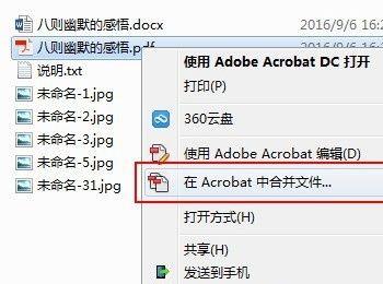 因为安装的是Adobe Acrobat,所以右键菜单中就有个“合并文件”的功能