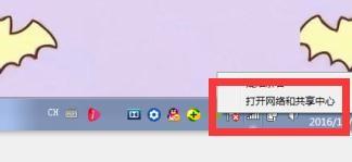 如果出现图下圈出来的情况,首先右击选择“打开网络和共享中心”。