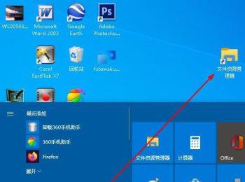 2. 第二步鼠标左键单击并按住【文件资源管理器】图标,根据下图箭头所指,将图标拖动到桌面,这样就能在桌面创建快捷方式。