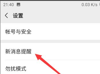 2. 第二步打开【设置】窗口后,根据下图箭头所指,点击【新消息提醒】选项。