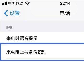 接着点击来电阻止与身份识别,如下图所示。
